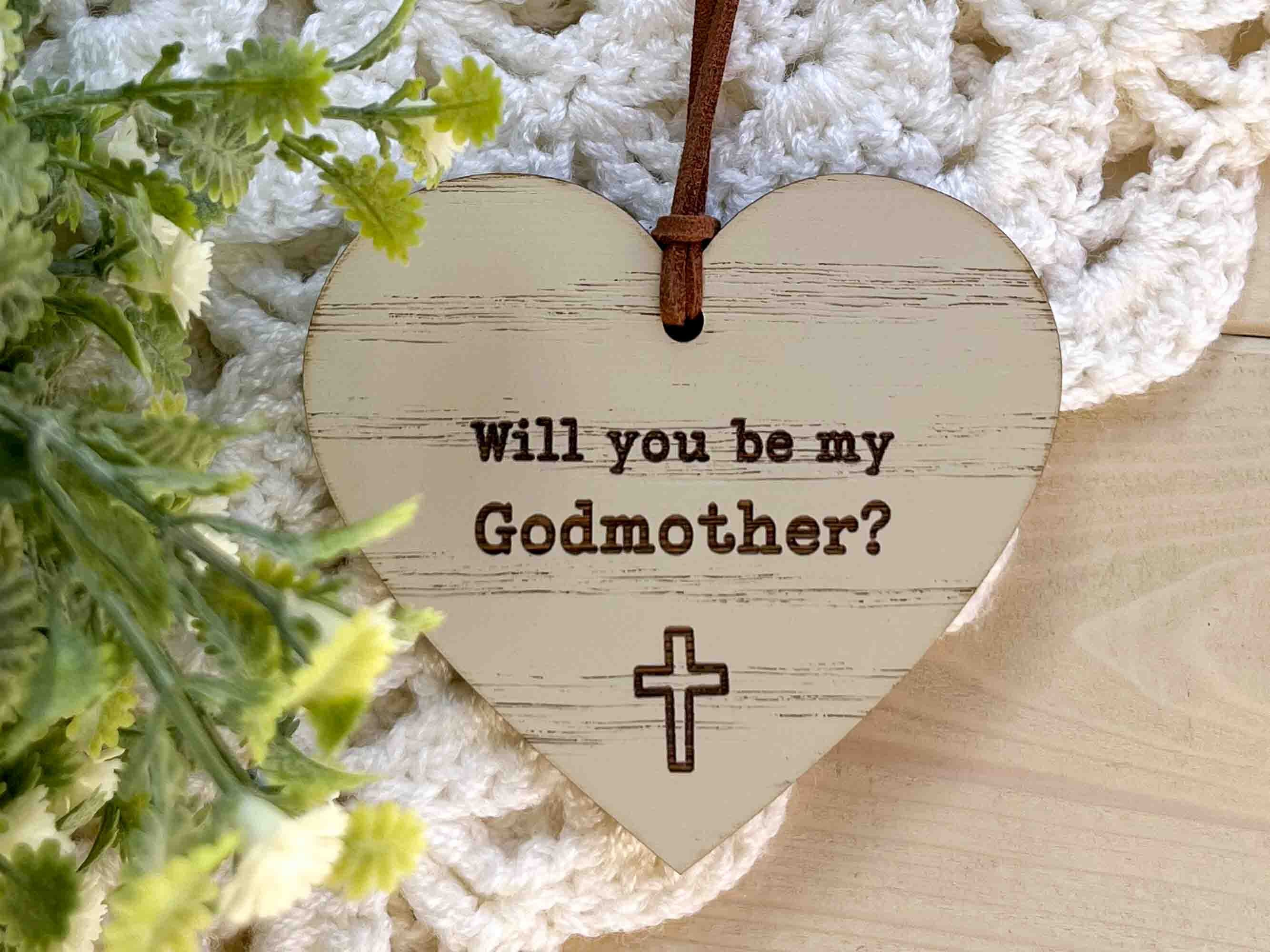 This keepsake wooden heart makes a lovely gift for asking a very special question 'Will you be my Godmother?'. It can be kept to remember this special occasion forever.
